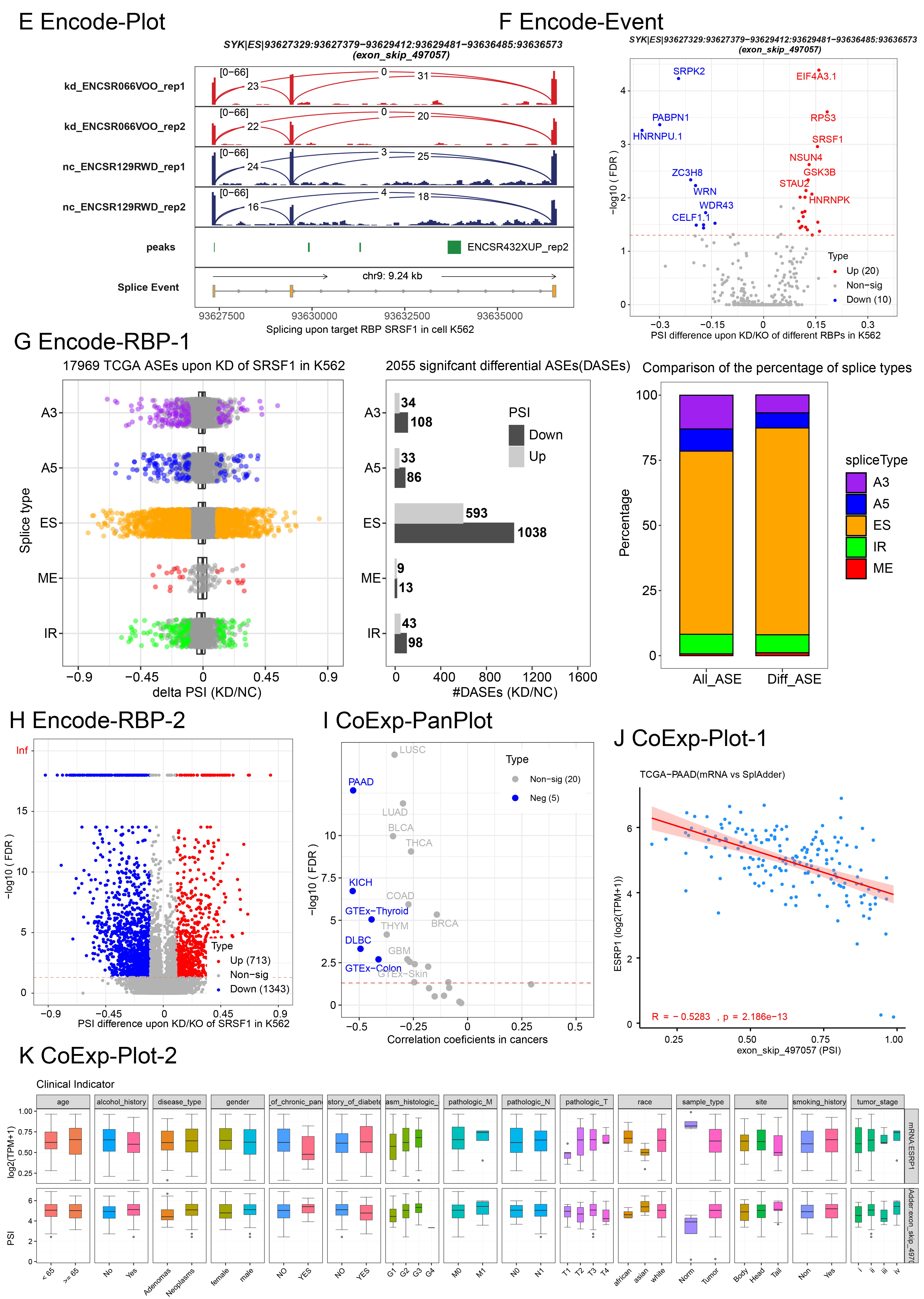 Encode-RBP generates several types of plots, including scatter plots, bar plots, and volcano plots, to illustrate the number, distribution, and overall landscape of AS events regulated by the selected RBP.